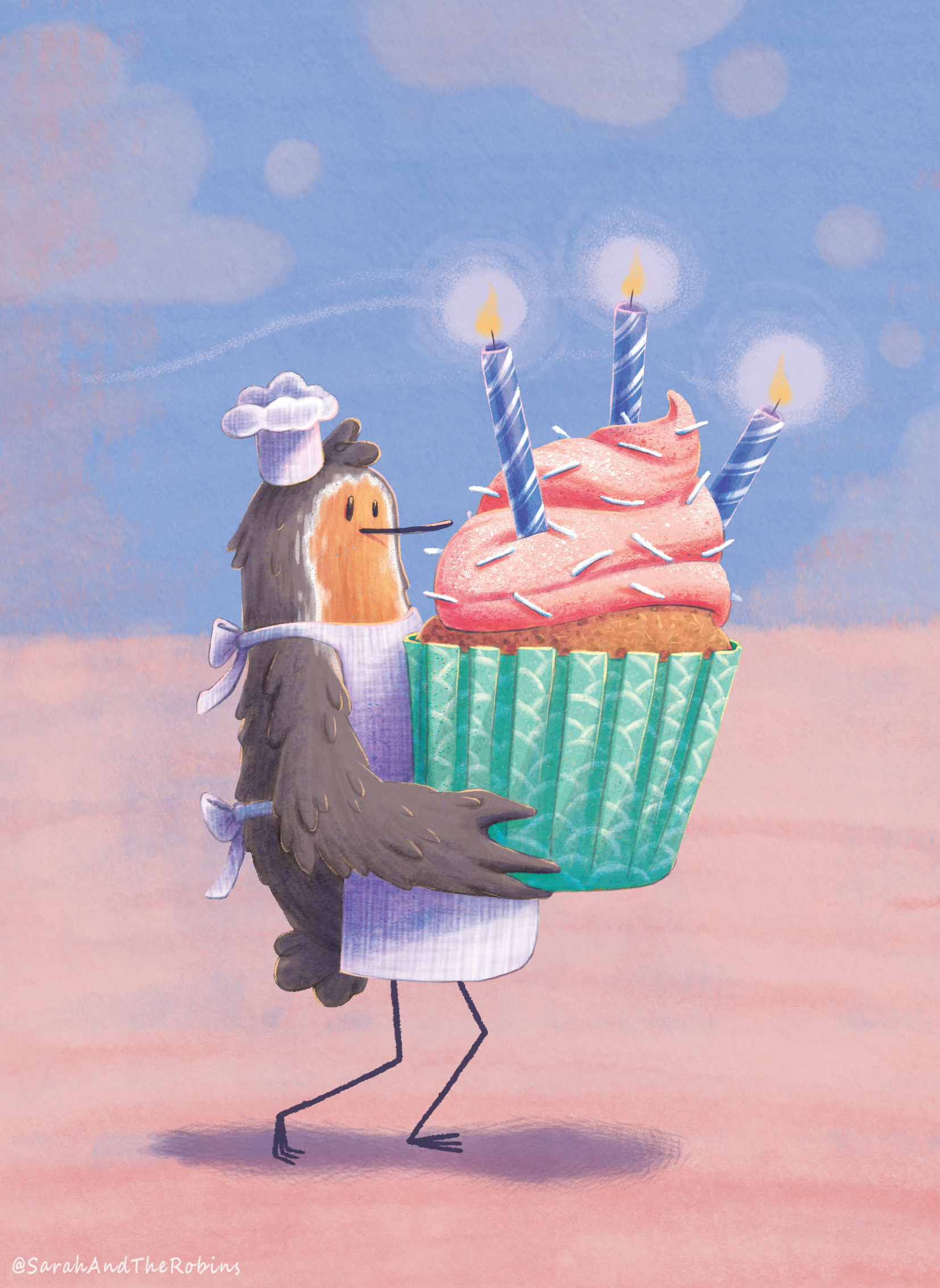 It's baking time, my little robin put all this heart into making this huge cupcake .