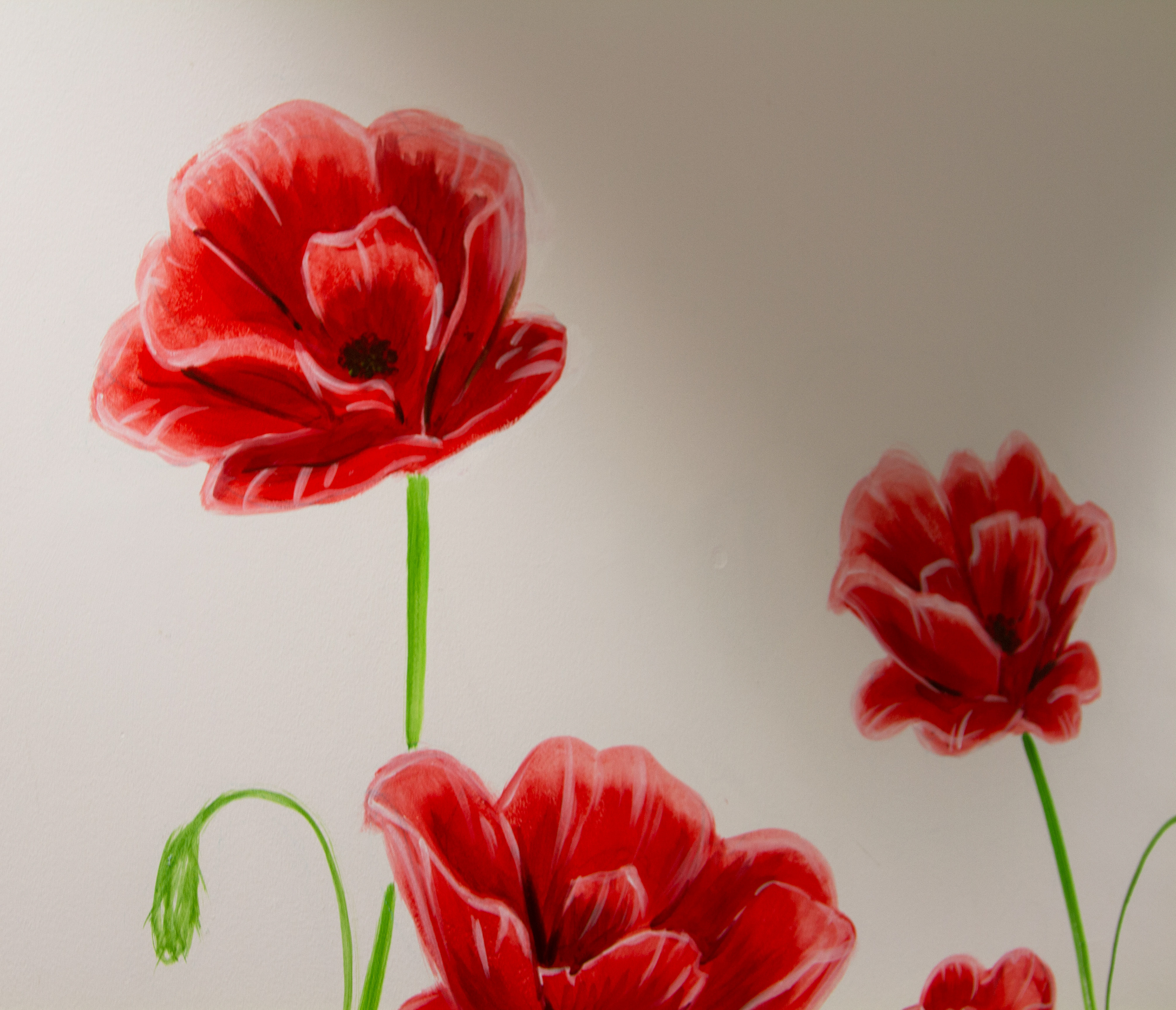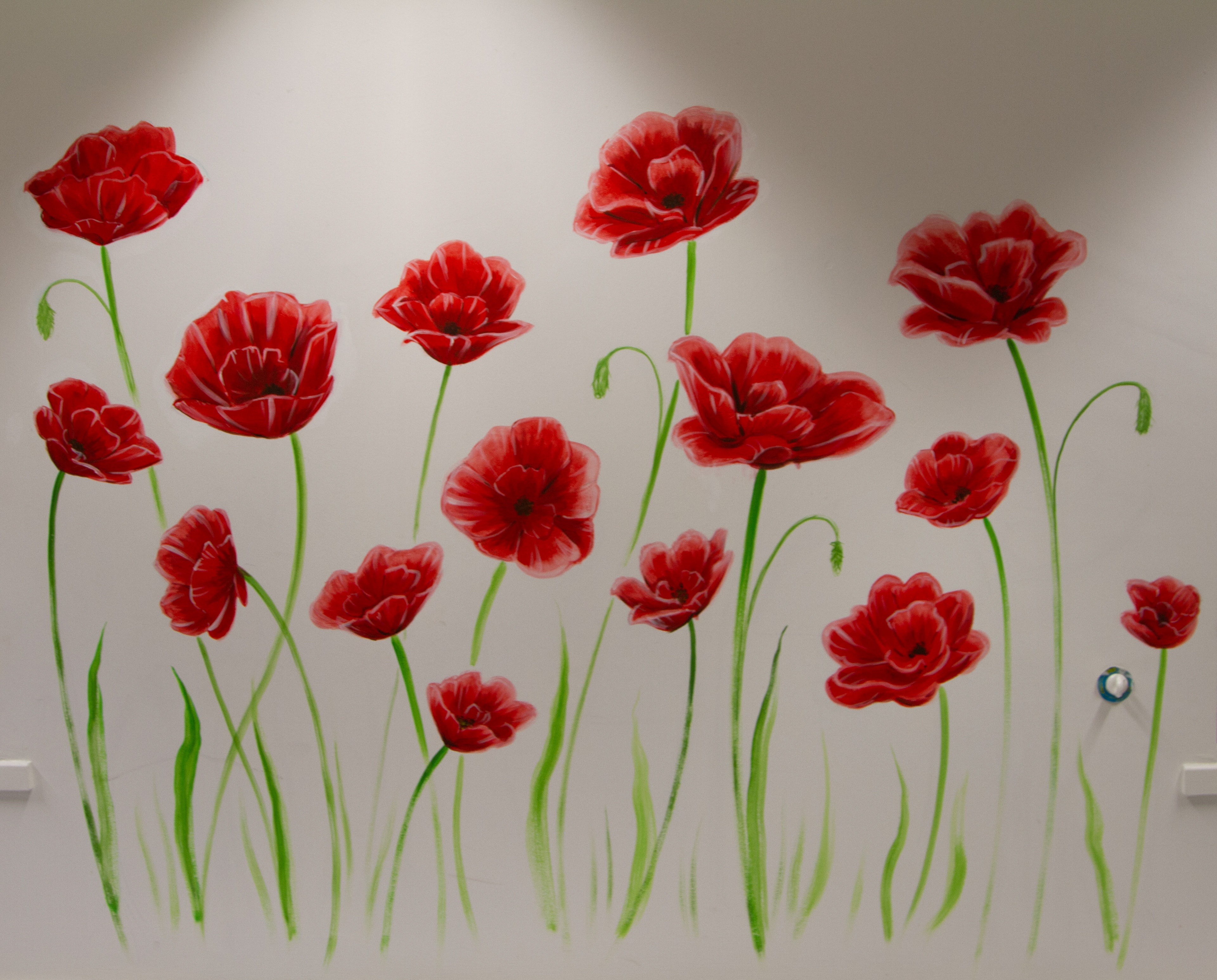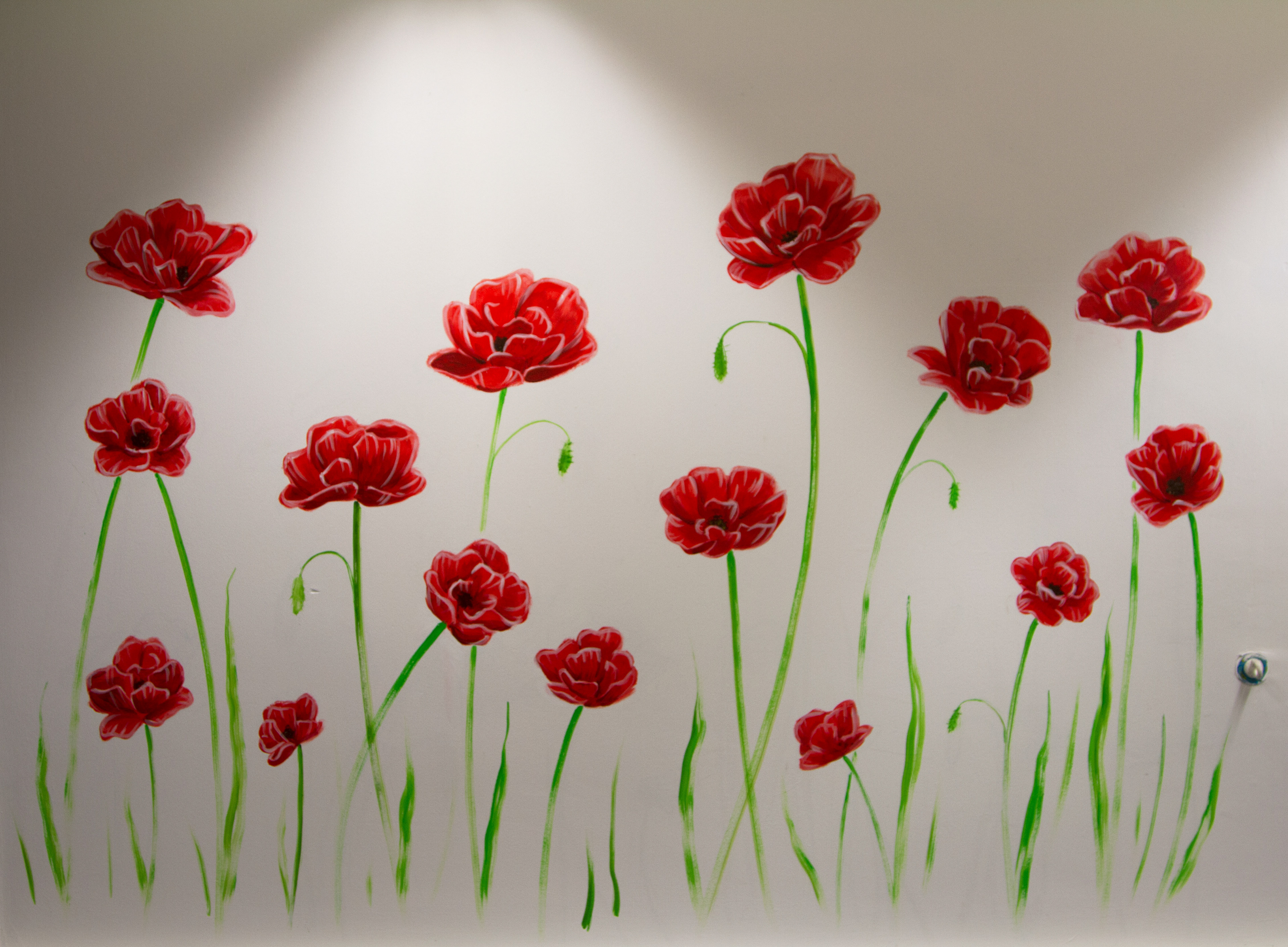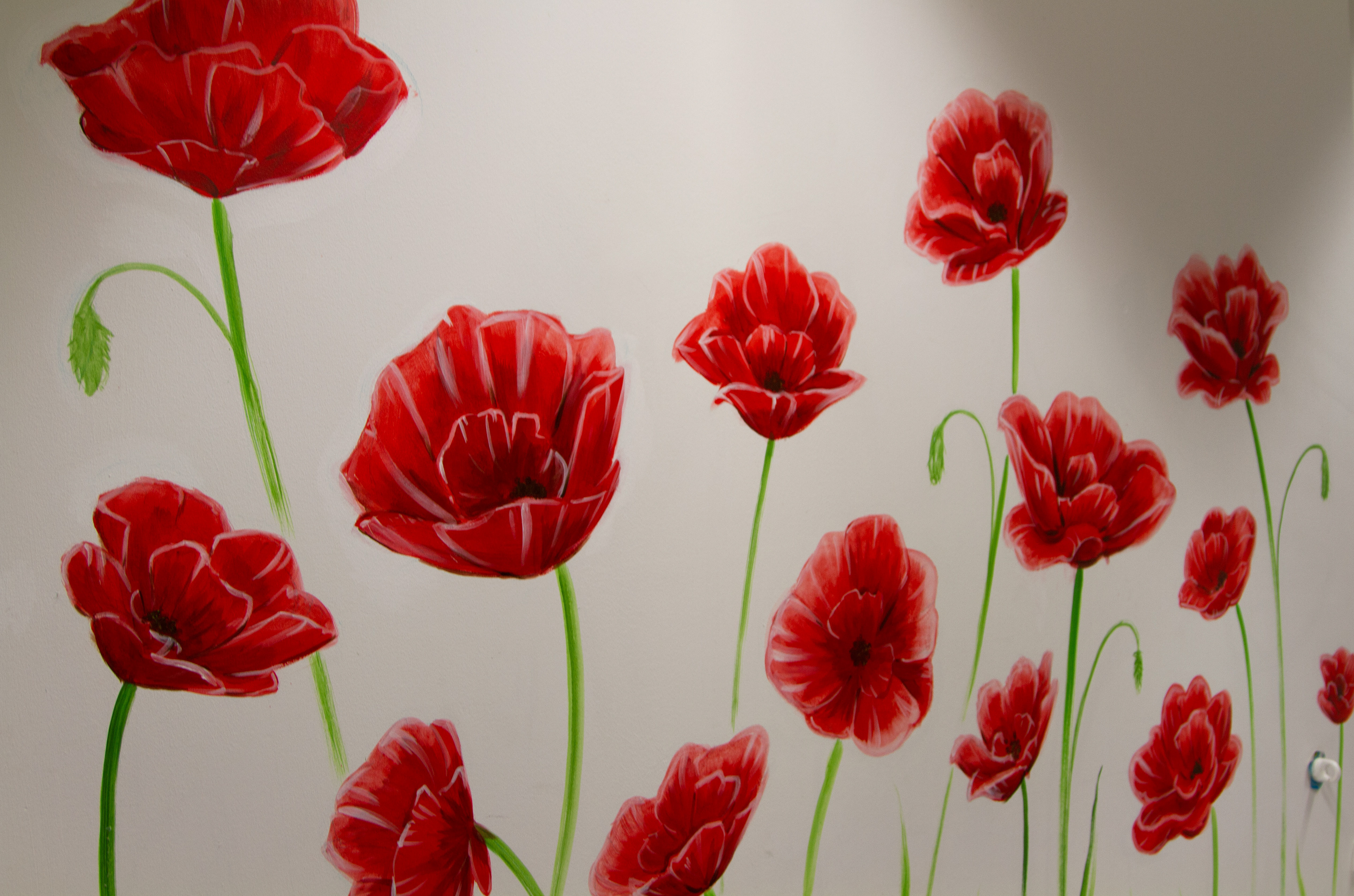 I gave this meeting room a fresh appearance by painting giant poppies on the walls.